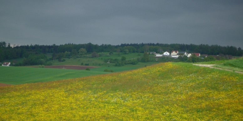 Diese Impression entstand im Frühsommer südlich der Eitersberger Heide. Das Gelb der blühenden Wiesen steht in starkem Kontrast zum dunkeln Himmel, der nichts Gutes erahnen lässt. Wie lange dauert es noch, bis die ersten Regentropfen uns ins Gesicht fallen?